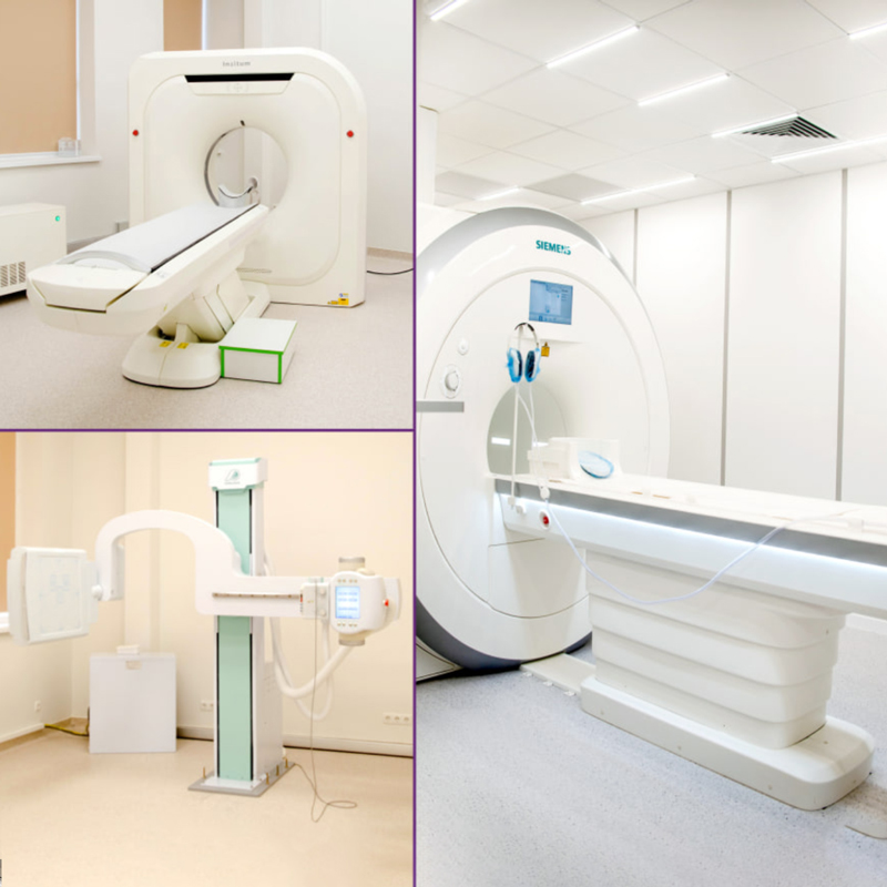 - Технічне оснащення і структура центру дають можливість надавати повний цикл медичної допомоги – від всеосяжної діагностики (МРТ і КТ томографія, УЗД, рентгенографія) й лікування (спеціалізовані операційні блоки, реанімаційні палати, перев’язувальна) до реабілітації (палати різного профілю).