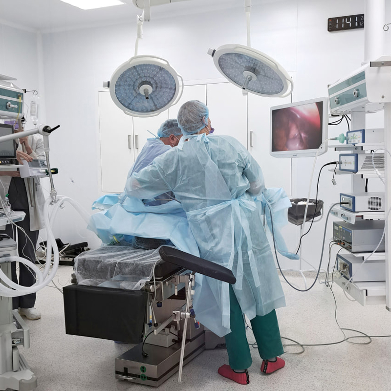 - Сучасні операційні. Відділення складається з 3 операційних палат, які пристосовані для проведення планових операцій хірургічного, гінекологічного, ортопедичного, нейрохірургічного, урологічного профілю під контролем ультразвуку та рентгена.